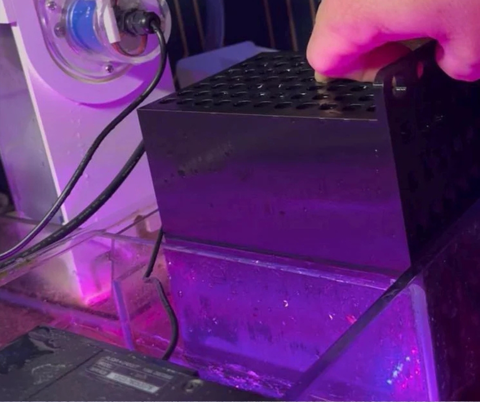 This custom media basket is designed to replace the filter socks in sumps that use a 4″ sock holder.